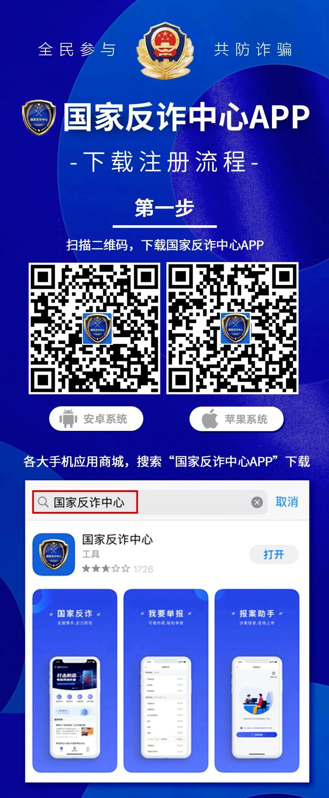 全体市民立即行动起来,从我做起,发动家人、亲友下载安装“国家反诈中心”APP,准确填写信息,启动“诈骗预警”功能,让我们共同携手接种反诈疫苗,增强自身反诈免疫力。