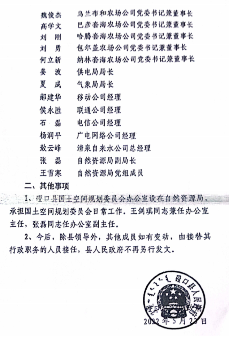 磴口县人民政府办公室关于成立磴口县国土空间规划委员会的通知