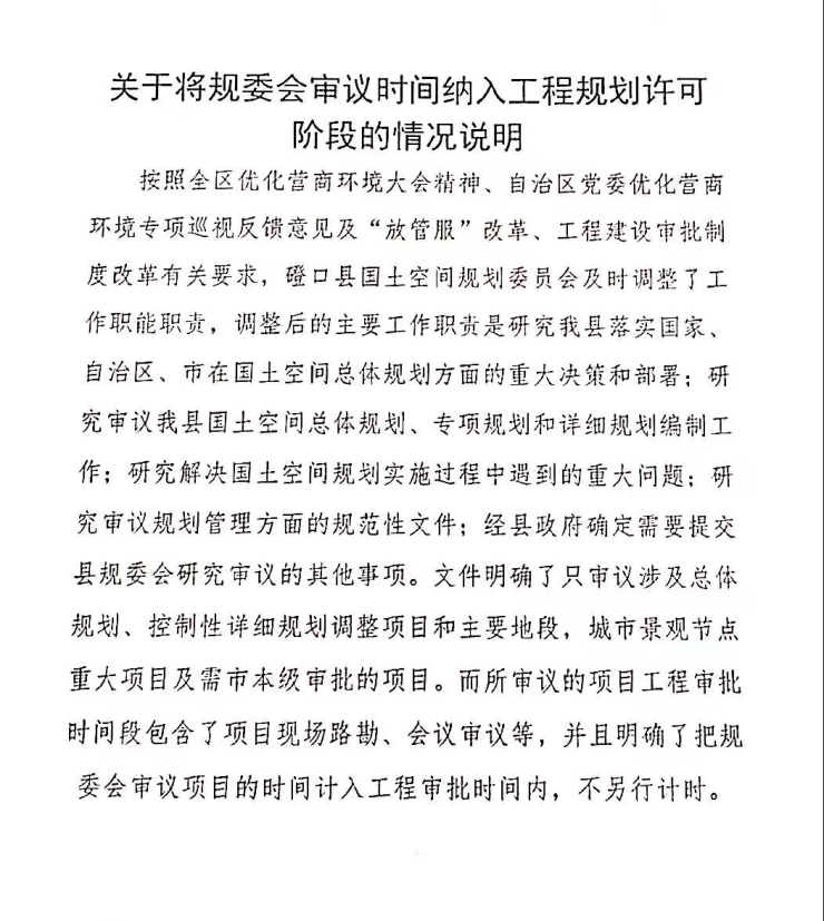 关于将规委会审议时间纳入工程规划许可阶段的情况说明