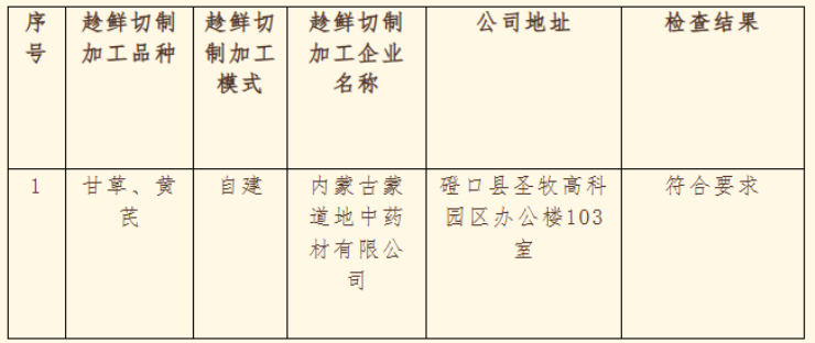 磴口县市场监督管理局关于发布内蒙古蒙道地中药材有限公司中药材产地趁鲜切制加工单位检查结果的通告
