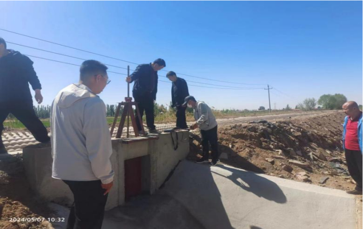 为顺利推进验收工作,磴口县耕保中心联合设计单位、监理单位、审计部门共同组织成立了验收工作小组,参与验收全过程,全面检查内业资料,对渠沟、土地平整、土壤改良、各类建筑物、道路、林网、高效节水工程等外业工程进行不低于50%的抽样核查。
