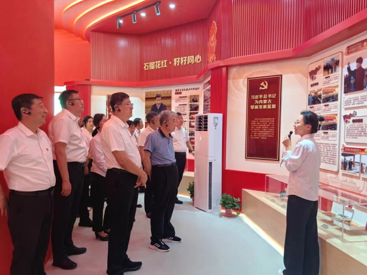 为深入贯彻落实习近平总书记关于加强和改进民族工作的重要思想,以铸牢中华民族共同体意识为工作主线,教育引导广大党员干部进一步增强政治意识,深刻认识全面贯彻铸牢中华民族共同体意识工作主线的极端重要性。7月19日,磴口县四大班子领导带领部分县直单位主要负责同志、各苏木镇党政“一把手”、农场公司党委书记深入沙金套海苏木巴音宝力格嘎查进行实地观摩。