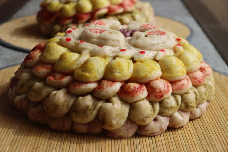 除了烤馍还制作花馍。花馍的制作工艺堪称一绝,每一个花馍都是手工艺人精心雕琢的艺术品。制作花馍的首要原料是当地优质小麦磨成的面粉,其筋道适中,为花馍的制作提供了坚实基础。在手艺人手中,这普通的面粉仿佛被赋予了生命。只见他们熟练地运用切、揉、捏、揪、挑、压、搓、拨、按等多种手法,将面团变幻出各种形态。再用剪刀、梳子、菜刀等日常工具巧妙修饰,花鸟鱼虫、飞禽走兽、人物故事等栩栩如生的形象便跃然眼前。为使花馍色彩更加丰富,手工艺人还会采用菠菜、南瓜、紫薯、甜菜根等天然蔬菜汁和水果汁给面团上色,不仅安全健康,还让花馍充满了自然的生机与活力。每一个花馍都仿佛被赋予了生命,让人爱不释手。近年来,补隆淖镇高度重视花馍这一传统技艺的保护和传承。一方面,积极挖掘和整理花馍制作的历史资料和传统技法;另一方面,加大对花馍制作艺人的扶持力度。同时,还通过举办民俗文化节等活动,提高花馍的知名度和影响力,让更多的人了解和喜爱这一传统美食。补隆淖镇花馍不仅是一种美食,更是一种文化的传承和延续。随着时代发展,人们的消费理念发生转变,一批历史悠久、内涵丰富的传统老手艺焕发了新生机。当色彩艳丽、造型多样的花馍端上餐桌,这项传统老手艺也在创新求变中焕发了时尚新魅力,蒸出了浓浓的幸福味道。