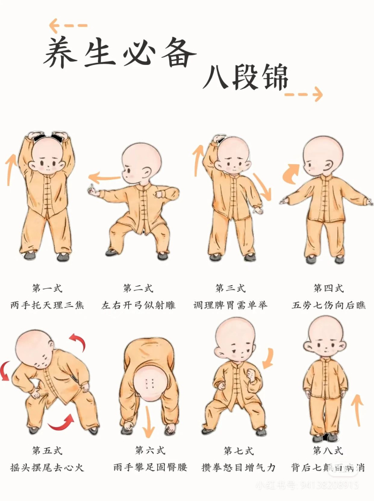 八段锦,作为中国传统保健功法,有着悠久的历史,融合了中医经络理论与传统武术精髓。它动作柔和缓慢,简单易学,不仅能疏通气血、强健体魄,还能调节身心,缓解压力,适合各个年龄段的居民练习。无论是想要增强体质的年轻人,还是注重养生保健的中老年人,都能在八段锦中找到属于自己的健康密码。