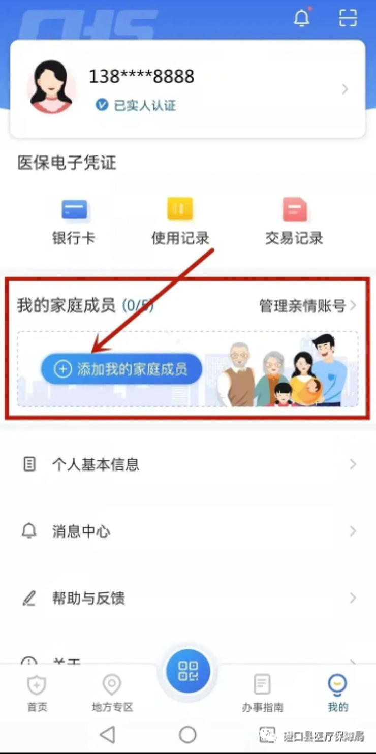 第三步、进入“我的”界面,点击“添加我的家庭成员”。