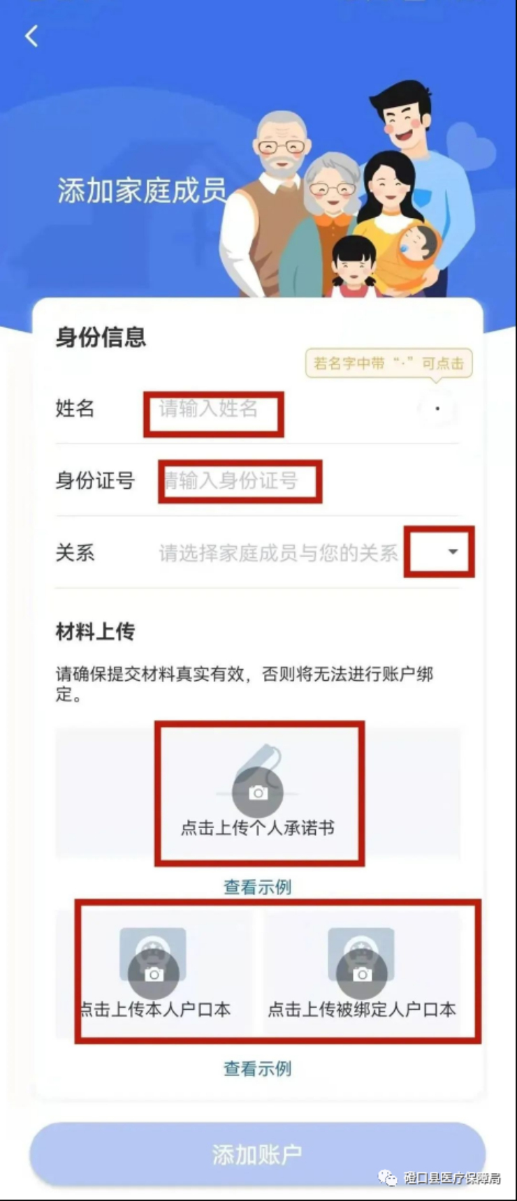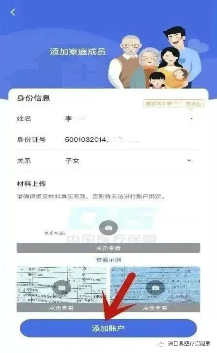 第七步、回到“添加家庭成员”界面,点击“添加账户”。