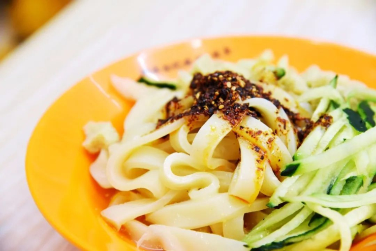 酿皮,当地人叫面精。河套小麦质优,筋度高。用河套优质面粉制作出的酿皮颇具韧性,有天然的嚼劲儿,再附上大块的面筋,浇上出自河套平原的醇香芝麻油和调味料,再夹上一筷子酸泡菜,别提多美味了。河套酿皮还是许多妇女同胞的减肥美食,一天三顿酿皮,保准让你吃得形销骨立。