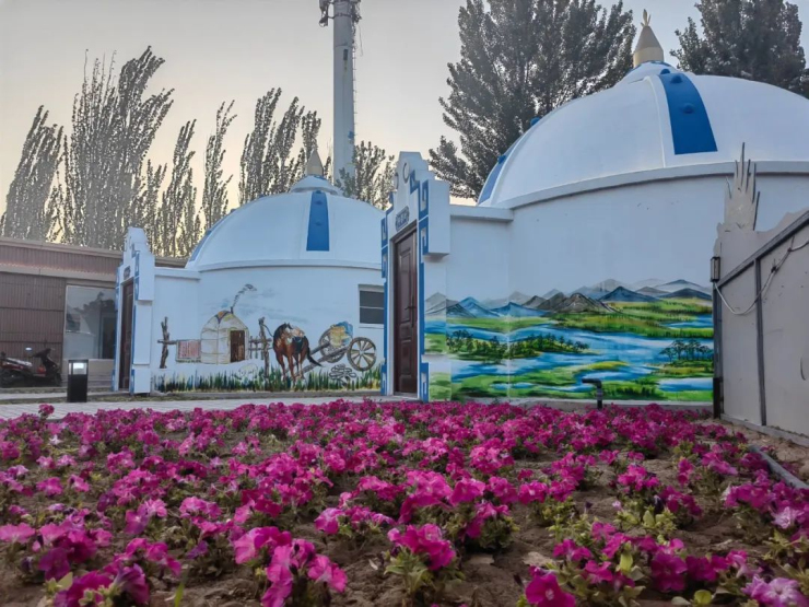 沿着小路向前,路过一片花田和蒙古包,一座美丽的城堡就出现在眼前