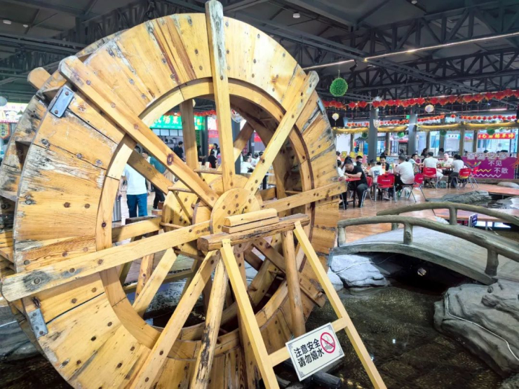 进入大门,一座木质水车在小溪中缓缓转动,江南水乡的气质一下跃然眼前。