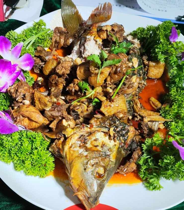 磴口县依傍黄河,黄河鲤鱼居中国四大淡水鱼之首,黄河鲶鱼又是黄河里较为珍贵的鱼种,全鱼宴席上,有熏制、干炸和油焖鱼,有水煮、清炖、红烧鱼,有利用鱼片烹饪的各类菜肴,也有鱼肉水饺、包子,更有鲜美的鱼骨汤……整个席面上色彩斑斓,琳琅满目,浓香萦绕,回味无穷。