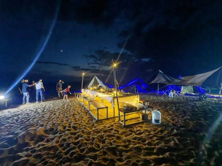 徒步穿越乌兰布和沙漠,挑战自我,用脚步丈量世界。走累了还可以体验滑沙、越野车冲沙。晚上就住在乌兰布和沙漠的星空营地,野炊畅聊、围炉煮茶、篝火烟花,尽情享受高远夜空下,沙漠里的快乐吧。