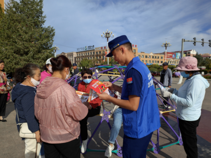 为提升各民族群众的安全感和幸福感,为各民族群众生命财产安全和促进各民族交往交流交融提供强有力的安全保障,近日,磴口县消防救援大队宣传人员以“消防安全传万家 共筑民族团结桥”为主题,走进辖区广场开展宣传活动。