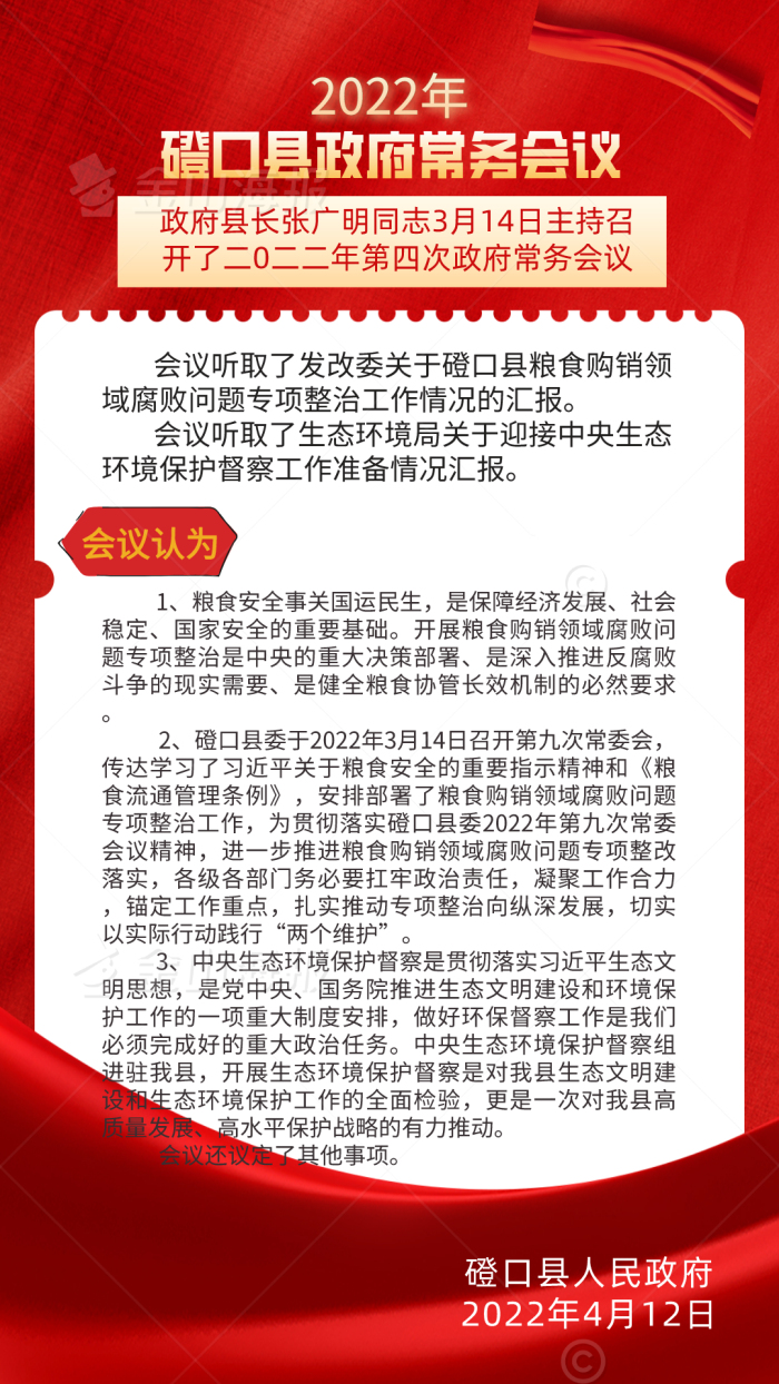 图解:3月14日磴口县第四次常务会议召开