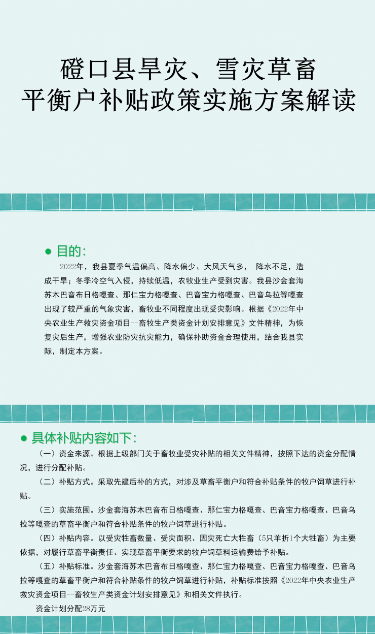 磴口县旱灾、雪灾草畜平衡户补贴政策实施方案解读