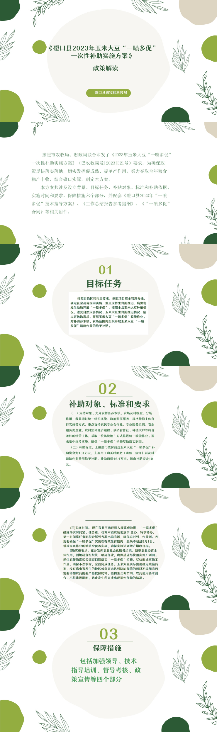 《磴口县2023年玉米大豆“一喷多促”一次性补助实施方案》政策解读