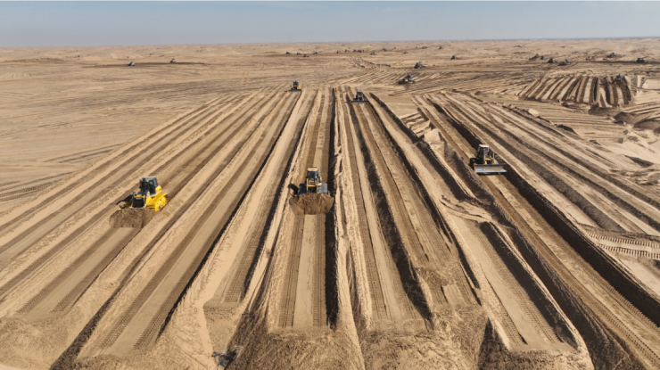 近日,总投资77.54亿元的乌兰布和沙漠东北部新能源基地先导工程200万千瓦光伏发电项目正在全面加紧建设。
