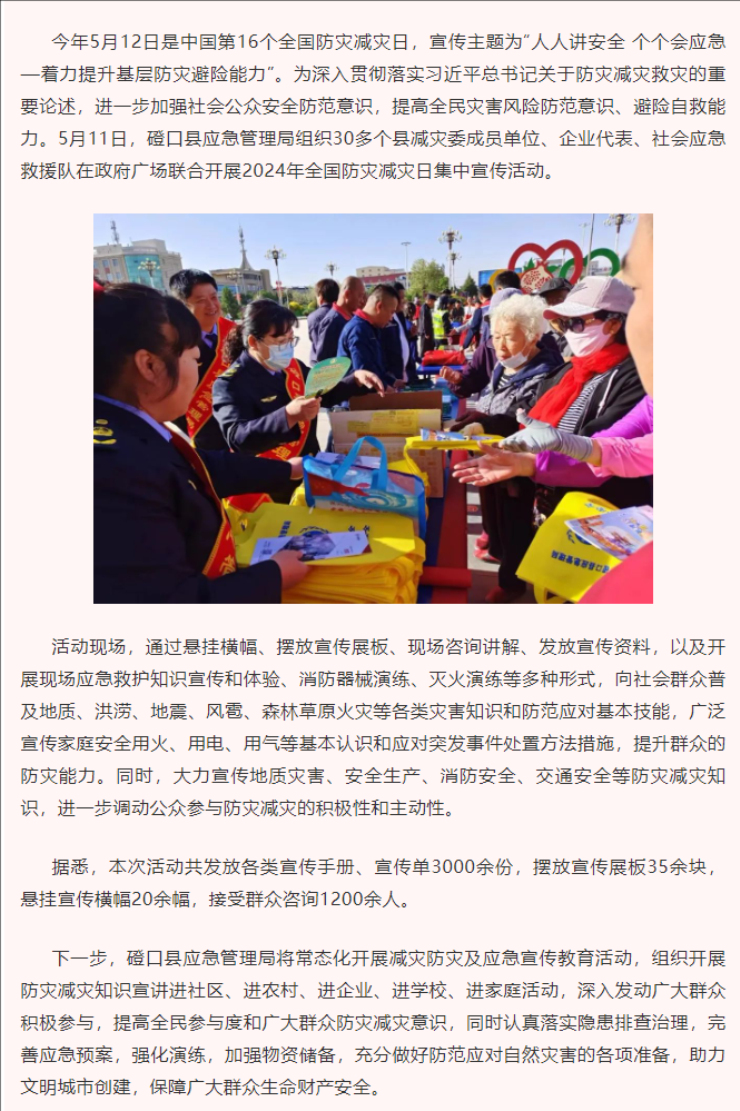 磴口县应急管理局积极开展全国5.12防灾减灾日宣传活动