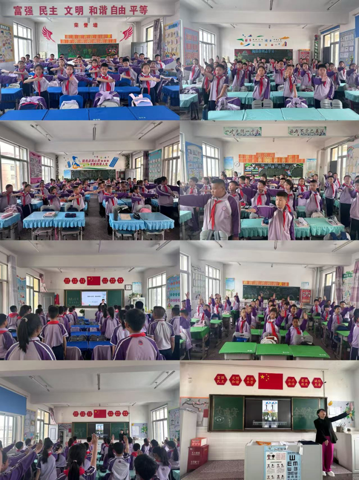 三四年级的同学们积极参与交通指挥手势操学习,认真模仿每一个动作,力求做到标准规范。