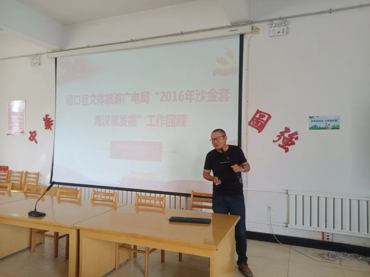 磴口县文物保护中心副主任王浩以《2016年沙金套海汉墓发掘“工作回顾》为题,从对2016年沙金套海汉代古墓发掘的地理位置、墓葬形制、随葬品、人骨鉴定、发掘收获等五大方面进行了系统的讲述。以图文并茂、实际案例等方式,生动地阐述了发掘的汉代古墓对于研究以窳浑县古城遗址为代表的部都尉治所的汉代北方边城的军事、经济、文化等具重大意义。讲座内容丰富,通俗易懂,对磴口的文物发掘及保护工作具有很强的指导性和针对性。
