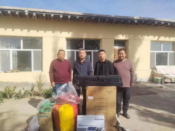 为全面落实全区首批农村牧区文化示范户扶持工作要求,贯彻落实内蒙古自治区文化和旅游厅《关于做好全区农村牧区文化示范户扶持设备采购工作的通知》文件精神,使配送器材得到有效管理和利用,发挥农村牧区文化户在乡村文化振兴、乡风文明建设、丰富基层文化生活、促进农村牧区经济社会进步方面的独特作用,经过前期对入选2022年自治区农村牧区2户(富民艺术团,李生福艺术团)文化示范户的实地调研,双方确认需求清单后,10月18日,由磴口县文体旅游广电局党组成员、副局长董永峰带领工作人员将文化户所需的音响设备、服装、乐器、充气帐篷送到富民艺术团,李生福艺术团。