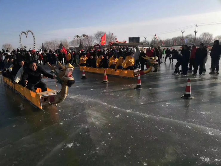 比赛设有冰上赛龙舟、冰上拔河比赛、冰车接力赛、冰上陀螺等项目。