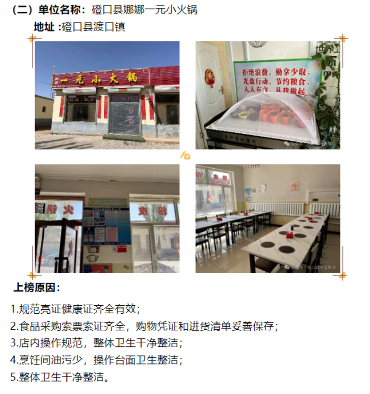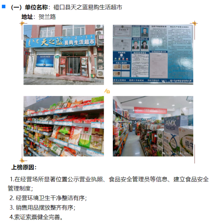 为进一步提升食品安全保障水平和监管效能,督促食品生产经营者全面履行主体责任,营造全民参与监督社会共治管理食品安全的良好氛围,磴口县市场监督管理局发布食品安全“红黑榜”(第八期),3家食品经营单位登上“红榜”,2家食品经营单位列入“黑榜”,下面,快来看看哪些单位榜上有名!