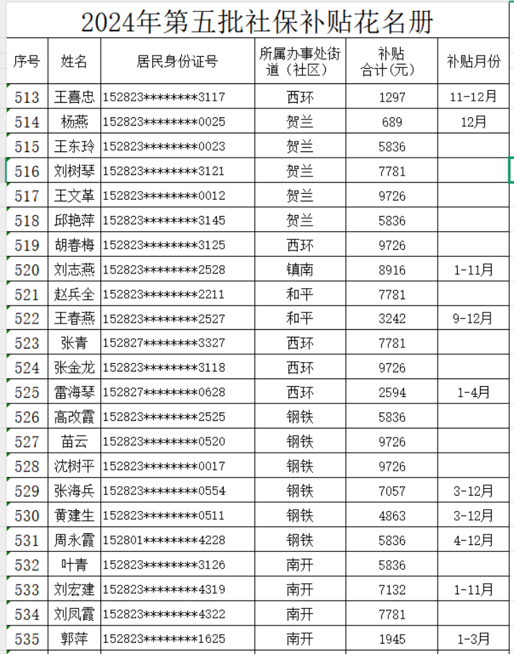 磴口县就业服务中心2024年灵活就业社保补贴公示名单(第五批)