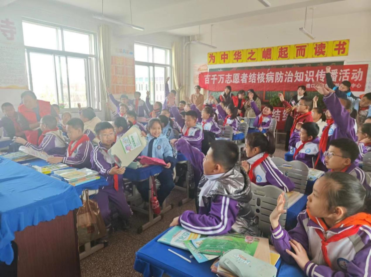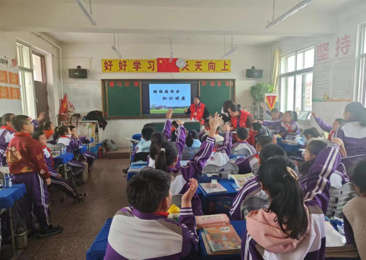 现场学生热情高涨、积极举起小手回答问题,增加了活动的趣味性、真实性,让孩子们在轻松愉快的氛围中学习到了解到了结核病防治相关知识,回家给家长们宣传结核病预防知识,通过教育一个孩子,带动一个家庭,影响整个社会,进一步提高全县居民结核病防治知识,起到小手拉大手的积极作用。