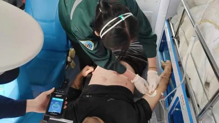 5月4日早8时06分,磴口县人民医院接到120急救指挥中心出诊指令后,3分钟内派救护车火速赶往事发现场开展医疗救援。同时,急诊科第一时间上报总值班和总带班,院内立即启动应急救治预案,开通紧急救治通道,并通知骨科、普外肿瘤科、泌尿肛肠科、呼吸内科医师第一时间赶到急诊科等候患者,同时通知ICU、手麻科、检验科、血库、超声科、影像中心等做好救治工作准备。