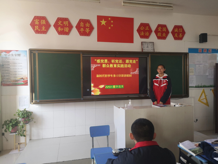 她声情并茂的讲述了自己的成长经历和励志故事。分享了自己对新时代好少年的理解和心得,让同学们受益匪浅。同时也号召同学们做一名践行社会主义核心价值观的好少年,做一名传承中华优秀传统文化的好少年,做一名传承红色基因的好少年,做一名热爱劳动的好少年,做一名志愿服务的好少年。