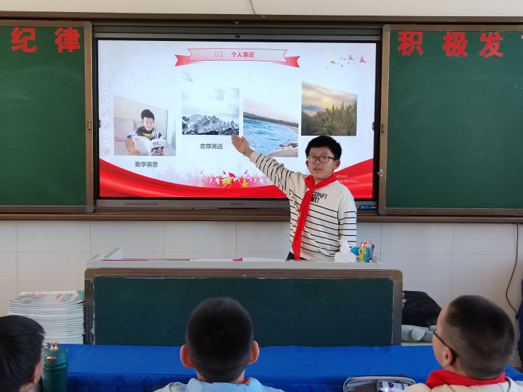 田梓衡同学以“争做新时代好少年”为题,在班级的主题班会上为同学们讲述自己的故事,他紧紧围绕主题,结合自身成长的轨迹,从“品学兼优、勤奋上进”,“美德诚信、团结互助”,“兴趣广泛、全面发展”,“乐于奉献、感恩回报”等方面饱含深情地诠释了乐观向上、尊师爱学、自强自立、感恩奉献的新时代好少年精神。