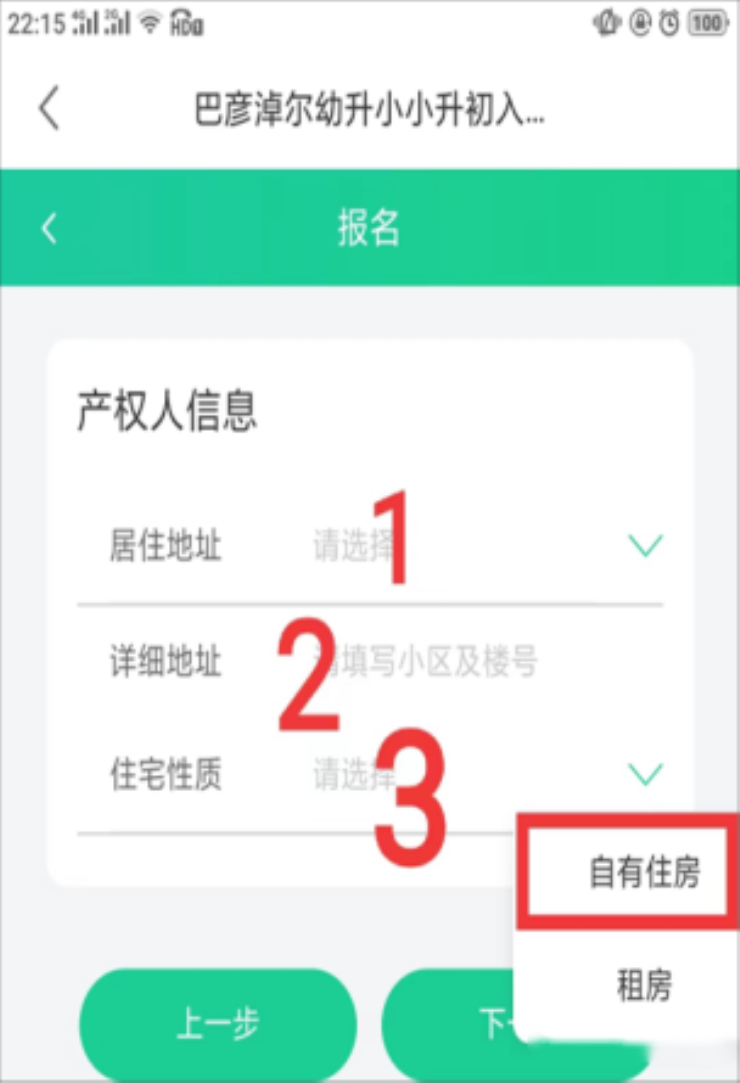 1.居住地址:需要准确填写房屋街道办事处--房屋所属划片区域。