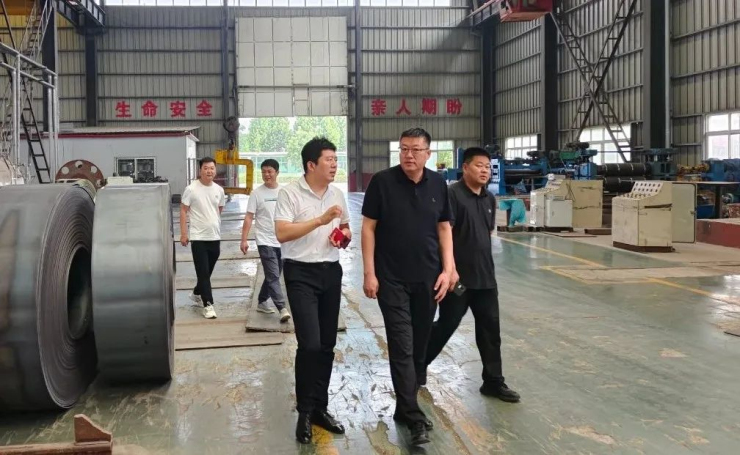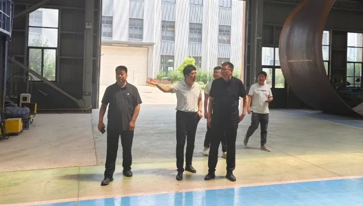 李志雄一行实地参观了光大公司风机塔筒和光伏支架生产车间,公司董事长刘建彬就产业布局、技术研发、风机塔筒和光伏支架制造及生产工艺流程等相关情况进行介绍。