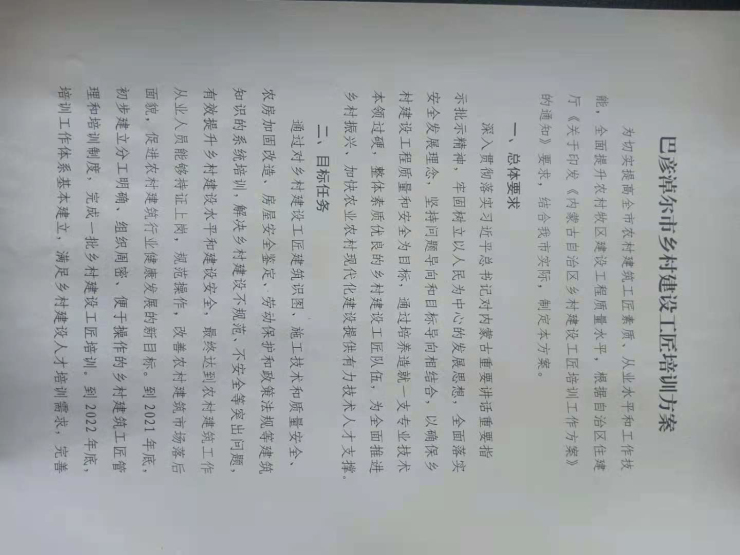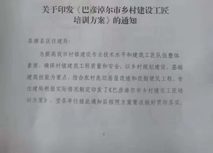 关于印发《巴彦淖尔市乡村建设工匠培训方案》的通知