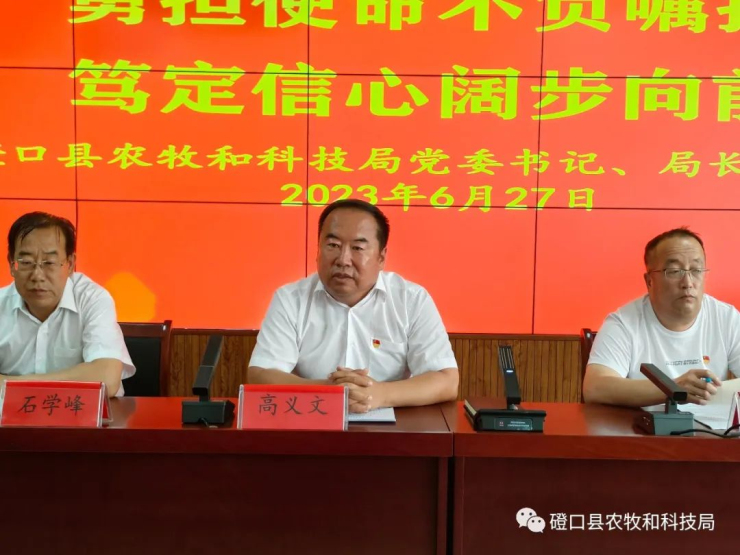 会上,磴口县农牧和科技局党委书记、局长高义文以《勇担使命不负嘱托 笃定信心阔步向前》为题,围绕习近平总书记在内蒙古巴彦淖尔考察期间重要讲话精神为全体党员讲授专题党课。他要求全体党员干部要坚持以党建引领业务、以业务促进党建的融合发展思想,坚决铸牢中华民族共同体意识,不断深化党建品牌建设,充分发挥党支部战斗堡垒作用,全体党员干部要把学习宣传贯彻习近平总书记考察内蒙古时的重要讲话重要指示批示精神作为当前和今后一个时期首要政治任务和头等大事,着力在学思践悟、知行合一上下功夫,按照上级部门的安排部署,紧紧围绕县委中心工作,与建设好“模范自治区”、抓好主题教育、深度节水控水等重点工作任务结合起来,促进理论学习成果转化为农牧和科技工作成效,提速提效推动落实,以更大力度和更实举措为民服务,不断推动我县农牧业高质量发展。
