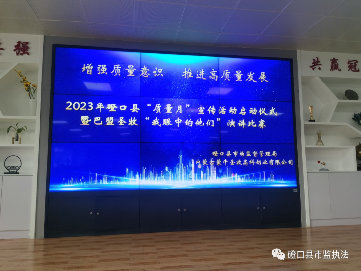 2023年9月是全国第46个“质量月”,活动主题为“增强质量意识 、推进高质量发展”。9月7日,磴口县市场监督管理局围绕“质量月”主题联合内蒙古蒙牛圣牧高科奶业有限公司,举办了2023年磴口县“质量月”宣传活动启动仪式暨巴盟圣牧“我眼中的他们”演讲比赛,拉开了全县“质量月”活动序幕。