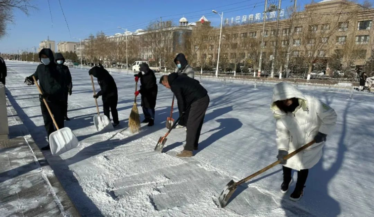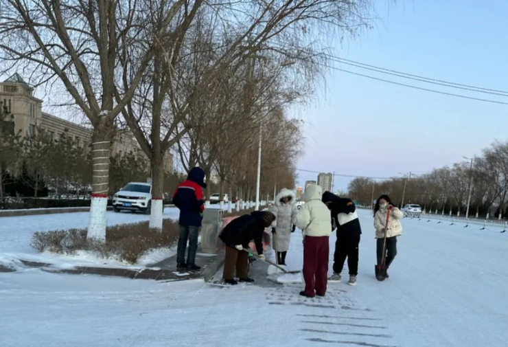 天气虽然寒冷,但是扫雪除冰的现场却是热火朝天。大家冒着零下十几度的严寒,不顾天寒路滑,分工明确,配合默契,拿起手中的扫帚、铲子、铁锹,清扫道路中的积雪,并集中堆放清运,恢复了道路的平整开阔,方便了群众出行和来往车辆通行。大家忙碌的身影映衬着白色的雪花,在冬天的寒风中构成了一道亮丽的风景线。战风雪,抗严寒;清路障,保平安。通过本次积雪清扫活动的开展,不仅体现了党员干部的责任担当,还充分展现了政务人团结奋进的精神风貌,彰显了政务服务局一心服务于民的深厚情怀。