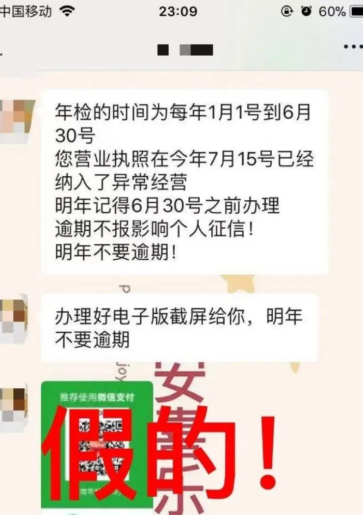 近期,一些不法分子通过微信、电话等形式欺诈经营者,谎称可代为向市场监管部门办理营业执照年度报告(年报)及“经营异常名录移出”等业务,但并未真正帮经营者办事,以此来骗取钱财。