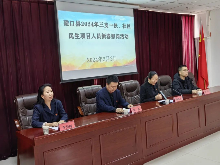 在新春来临之际,为充分体现党和政府对“三支一扶”、社区民生基层项目服务人员的关怀和重视。2月2日,磴口县人社局开展“三支一扶”、社区民生项目人员新春慰问活动,县委常委、政府副县长姚明月,大数据中心主任贾旭、人社局局长张勇、副局长李秀梅同志出席活动。全体“三支一扶”、社区民生项目人员参加慰问活动。