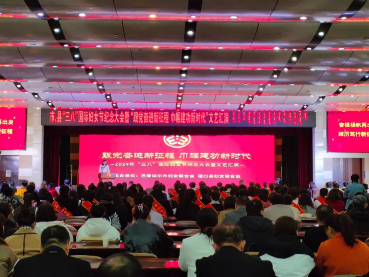 3月6日,由市妇联主办、磴口县妇联承办的“三八”国际妇女节114周年纪念大会暨“跟党奋进新征程 巾帼建功新时代”文艺汇演在磴口县会展中心举行。市妇联党组书记、主席王慧荣出席并讲话,磴口县委副书记、政法委书记马海波致辞,磴口县人大常委会主任秦霞、政协主席弓建刚,县委常委、统战部部长、政府党组成员孟乐,县委常委、政府副县长姚明月等有关领导参加,市妇联党组成员、副主席申贺华主持会议。