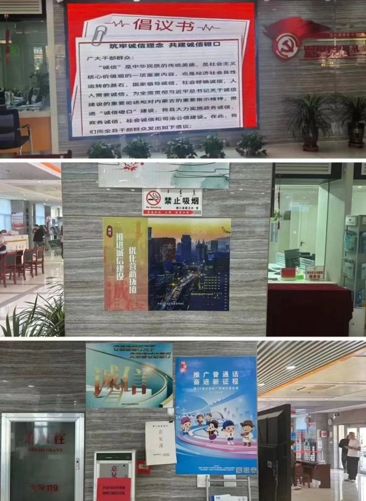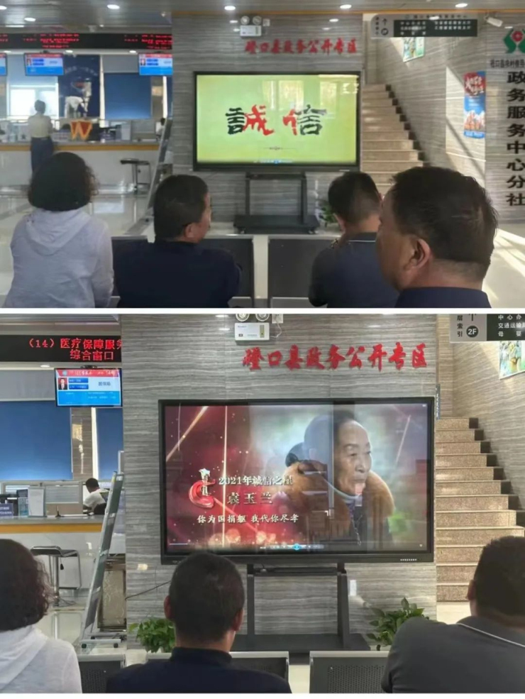 在政务大厅利用LED大屏幕滚动播放“牢筑诚信理念共建诚信磴口”倡议书,通过电子宣传栏播放诚信建设宣传片,张贴诚信建设宣传海报等方式,多渠道、多形式开展诚信建设宣传,进一步增强了办事群众和工作人员的诚信意识,倡导大家在工作和生活中提升诚信意识,践行诚信理念。