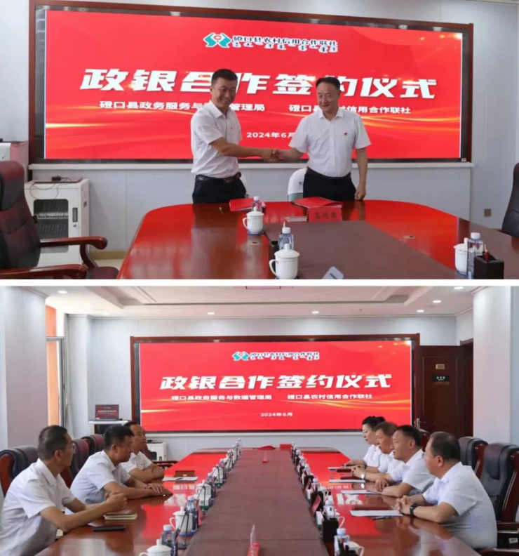 为进一步推动政银合作,实现政务服务与金融服务的有效融合,增强政务服务工作效能,提升公共服务水平和“一站式”政务服务能力。2024年6月26日,磴口县政务服务与数据管理局与磴口县农村信用合作联社政银战略合作协议签约仪式在农村信用合作联社会议室举行。