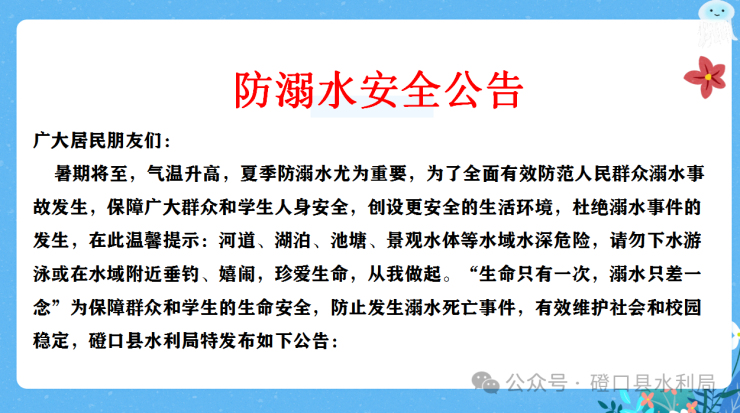 磴口县水利局暑期防溺水倡议书