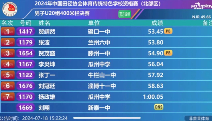 7月14日至18日,“中国体育彩票杯”2024年中国田径协会体育传统特色学校田径资格赛(北部区)在河北廊坊固安县举行,此项赛事是全国青少年田径领域最高级别的赛事之一。本次比赛共有来自北部区的18个省、市、自治区的99支队伍参赛,1000余名运动员齐聚固安、同场竞技。磴口一中派出12名运动员,12名运动员全部闯进总决赛。
