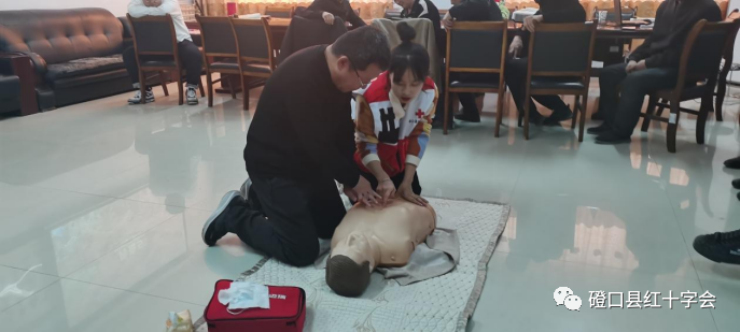 培训中,红十字会讲师向干部职工介绍心肺复苏术、头部外伤包扎、海姆立克急救法和AED机使用教程等理论知识,指导大家如何判断是否进行心肺复苏,重点强调救护过程中的注意事项,尤其对如何在事故发生第一时间采取正确的应急措施,争取“黄金4分钟”,最大限度在医生和救护人员到来之前协助挽救生命等作了详细讲解。同时借助模拟人教具向干部职工讲解详细操作步骤并让他们现场亲自体验,掌握自救互救知识。
