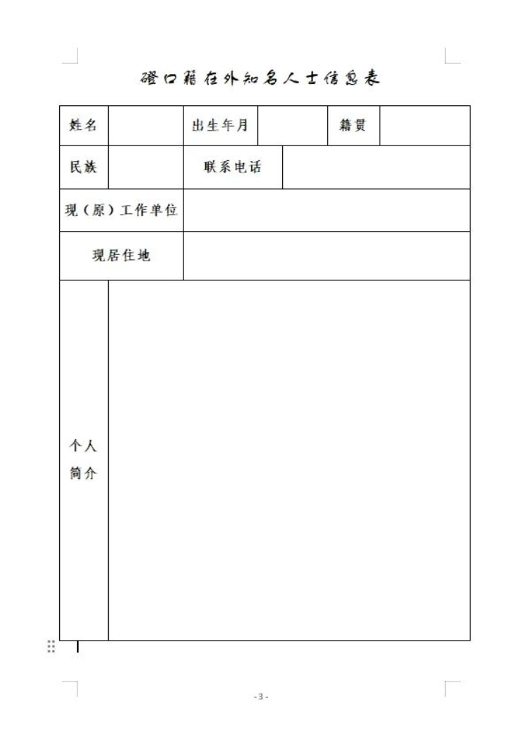 (二)他人推荐。磴口籍在外知名人士的亲朋好友主动联系,填报《磴口籍在外知名人士信息表》推荐。