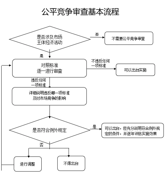 政策制定机关开展公平竞争审查应当遵循审查基本流程(可参考附件1),识别相关政策措施是否属于审查对象、判断是否违反审查标准、分析是否适用例外规定。属于审查对象的,经审查后应当形成明确的书面审查结论。审查结论应当包括政策措施名称、涉及行业领域、性质类别、起草机构、审查机构、征求意见情况、审查结论、适用例外规定情况、审查机构主要负责人意见等内容(可参考附件2)。政策措施出台后,审查结论由政策制定机关存档备查。