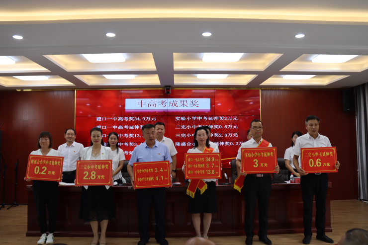 会上,何承刚副主任、李君霞副主席分别宣读了《关于表彰全县教育工作先进集体、优秀教育工作者、优秀德育工作者、师德师风先进个人、优秀教师和优秀班主任的决定》、《关于2023年全县中高考奖励情况的通报》,通报表彰了3个“教育工作先进集体”和36名“优秀教师”、5名“优秀教育工作者”、10名“优秀班主任”、8名“优秀德育工作者”、5名“师德师风先进个人”,同时,按照《磴口县教育基金会经费保障机制及实施方案(试行)》精神,为磴口一中、实验中学颁发了中高考成果奖,为实验小学、二完小、三完小、隆盛合学校颁发了中考延伸奖。