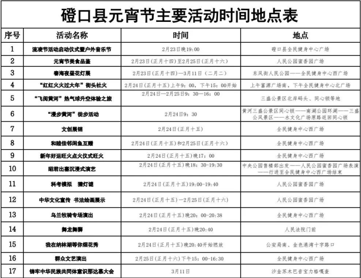 二、元宵节活动期间,广大居民要积极宣传磴口县民情风俗、旅游景点、特色产品、美食佳肴等我县特色,增进游客对磴口的了解,感受磴口县独特民风民俗。