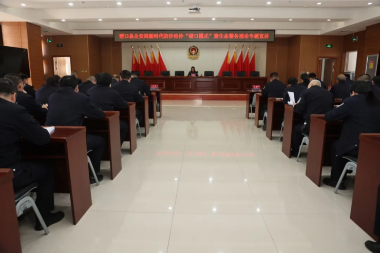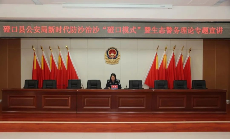 为全面贯彻落实习近平总书记考察内蒙古、考察巴彦淖尔的重要讲话重要指示精神,让民辅警应知尽知新时代防沙治沙“磴口模式”,不断提升“磴口模式”的知晓度和影响力。3月19日政府副县长、公安局局长何蓉在磴口县公安局开展新时代防沙治沙“磴口模式”暨“沙枣花”生态警务理论专题宣讲,县公安局领导班子成员、机关、城区各部门负责人、民辅警参加宣讲会。
